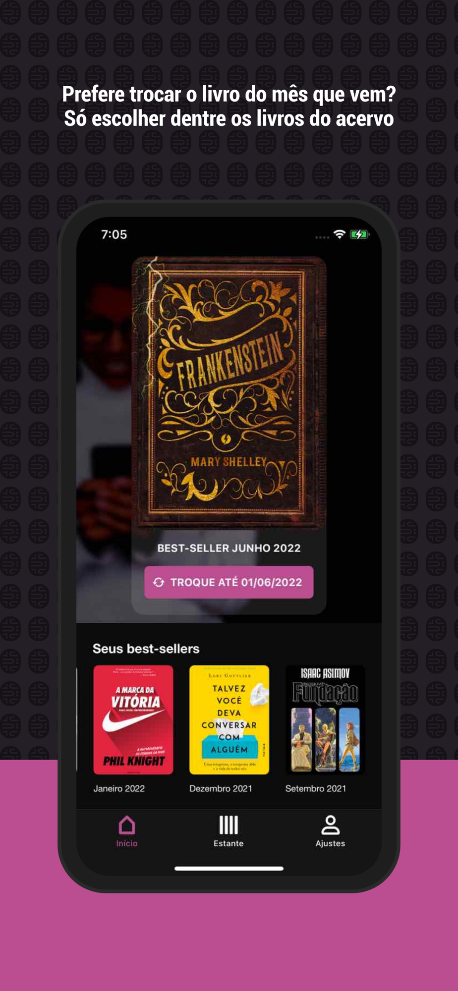 No Book On, assinantes via loja de aplicativos podem realizar a troca do livro do mês vigente em até sete dias a partir da data de assinatura.
