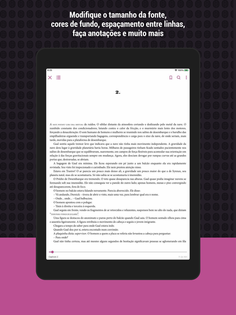 - As funcionalidades de personalização garantem um momento de leitura ainda mais agradável