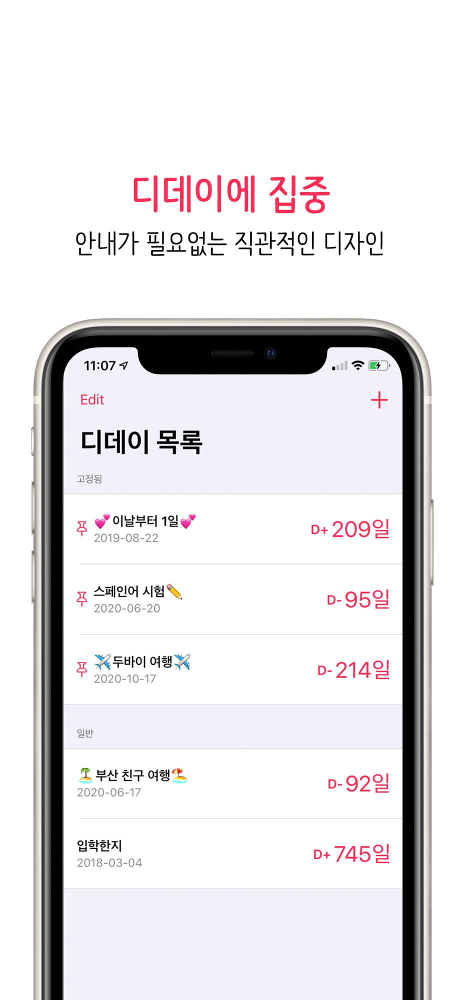 디데이를 추가하고 관리하는 과정에서 오직 디데이에만 신경 쓸 수 있도록, 남은 날들과 지난날들을 어느 때 어느 곳에서나 추억하고 떠올릴 수 있도록 디자인되었습니다.