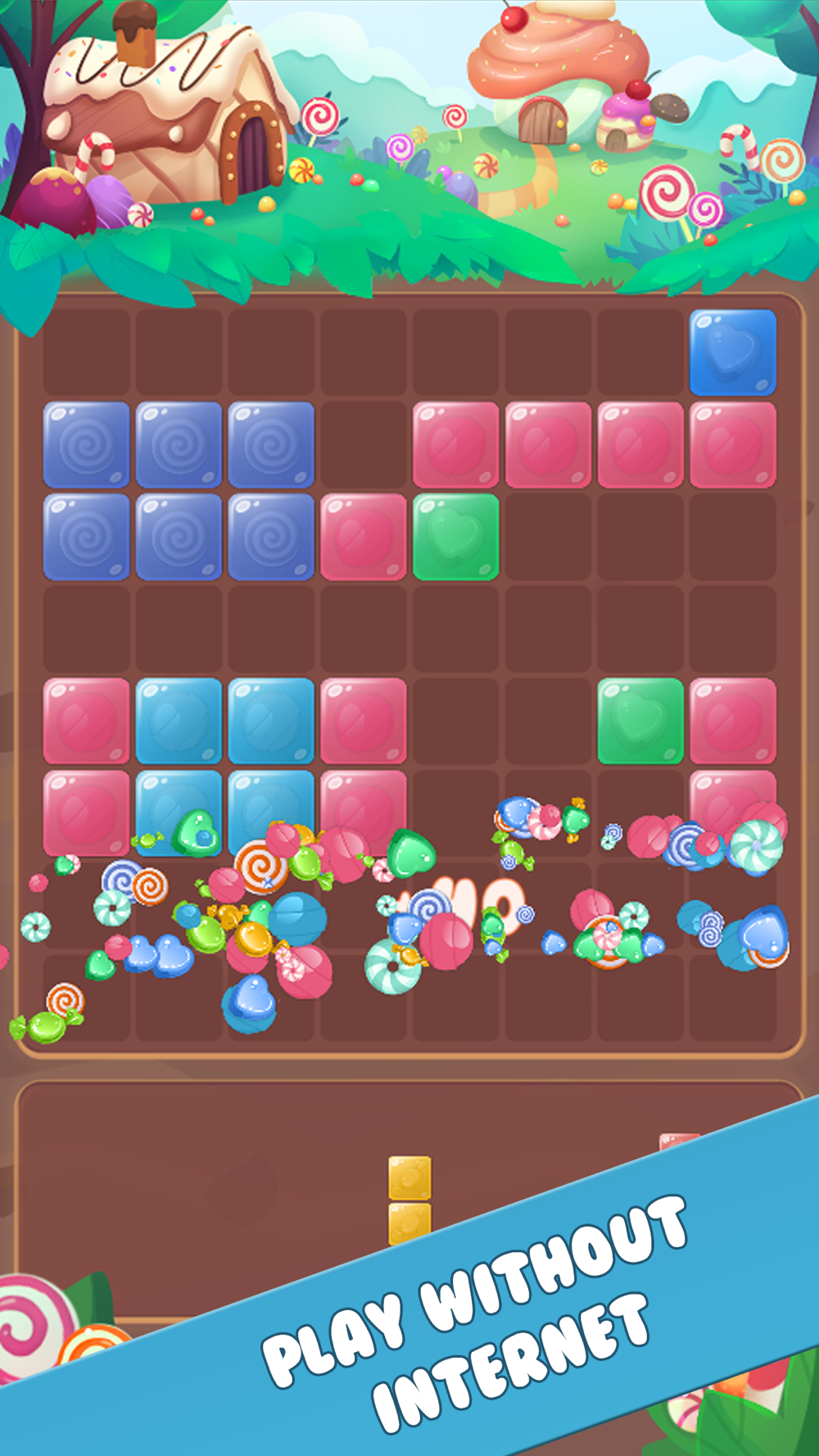 Pastry Block Puzzle game is simple - on a board, drop blocks of different shapes in order to create and destroy full lines on the screen both vertically and horizontally. Combine, connect and destroy puzzle block shapes!