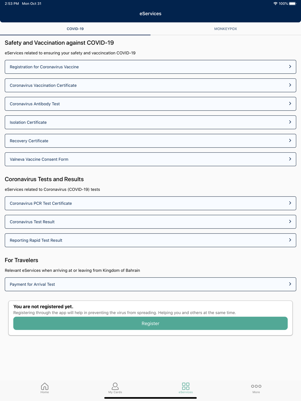 BeAware has additional features related to view the users’ official cards, health cards and health appointments as well as MonkeyPox Recovery Certificate,MonkeyPox Isolation certificate