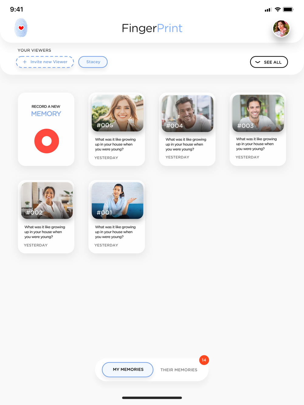 After you create an account, you can add the family members or friends that you would like to have access to your memory timeline.