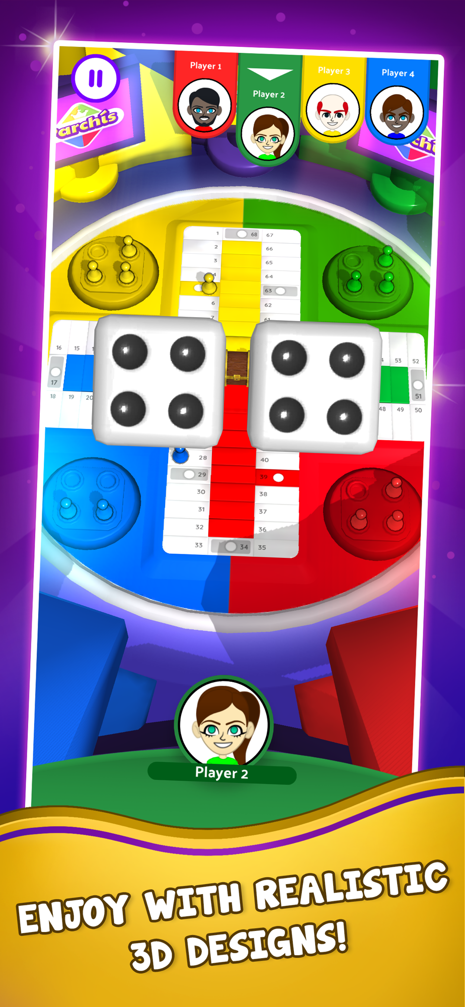 Compared to the traditional tabletop game, in this special version you will find 3D scenarios, making the game more realistic. Both the pawns and the dice are also realistic. Enjoy two different boards: the beach and the contest.