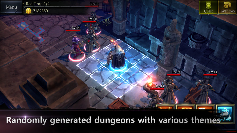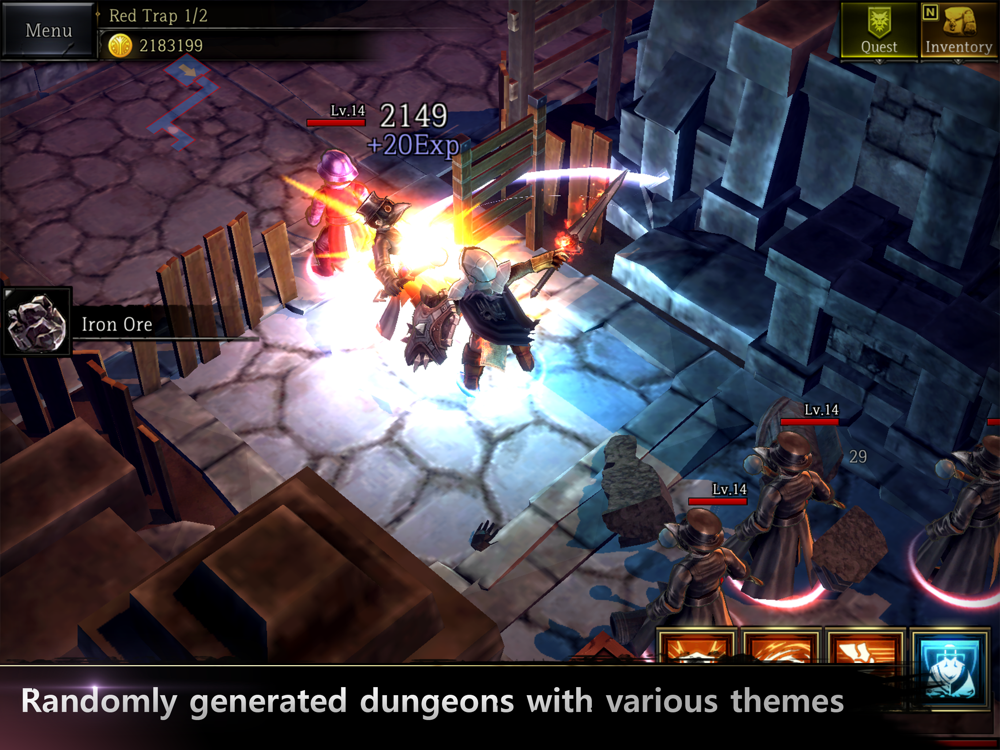* Explore regions with diverse themes and randomly generated dungeons with optimized, intuitive, and easy-to-use mobile device controls.