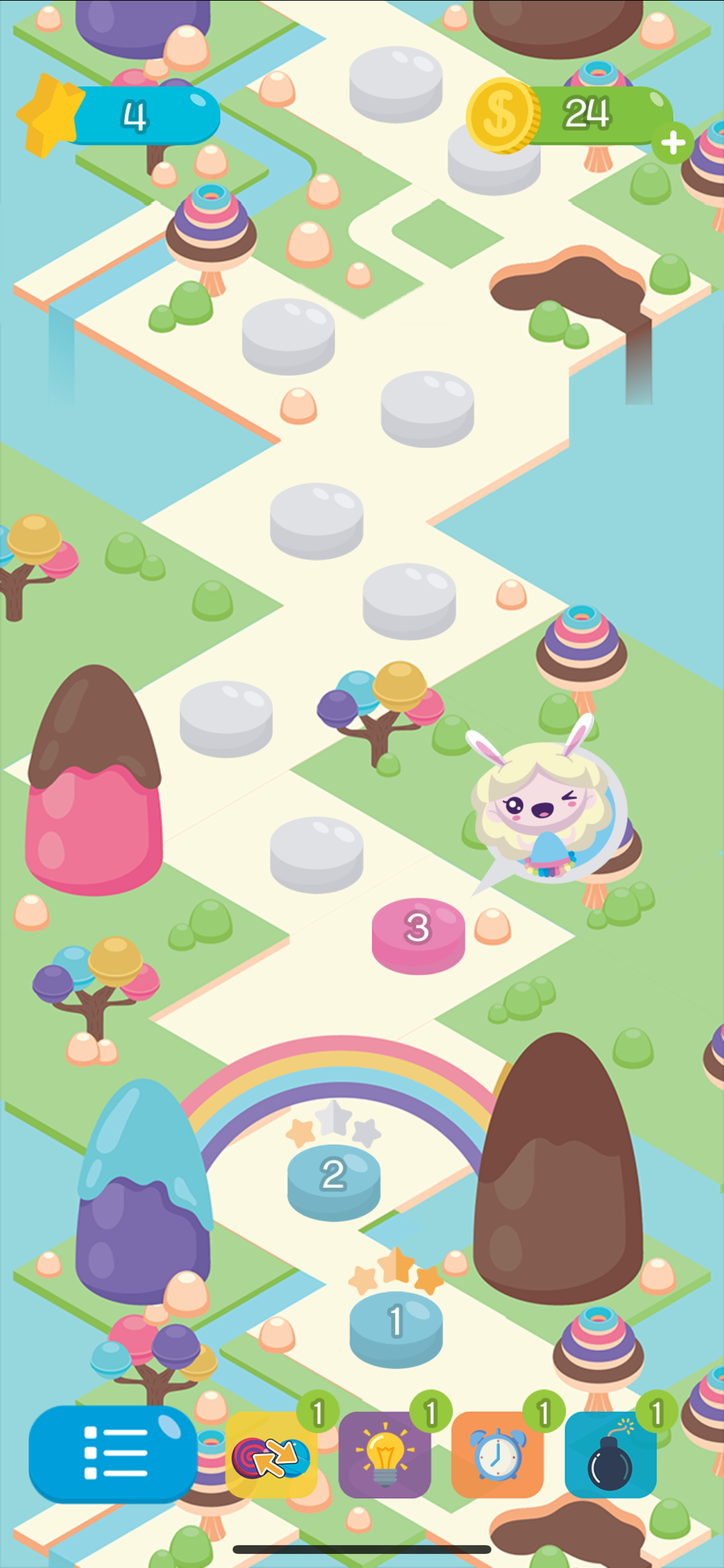 Getting Rid of two blocks with the same candy or dessert by linking them with less than 3 lines.