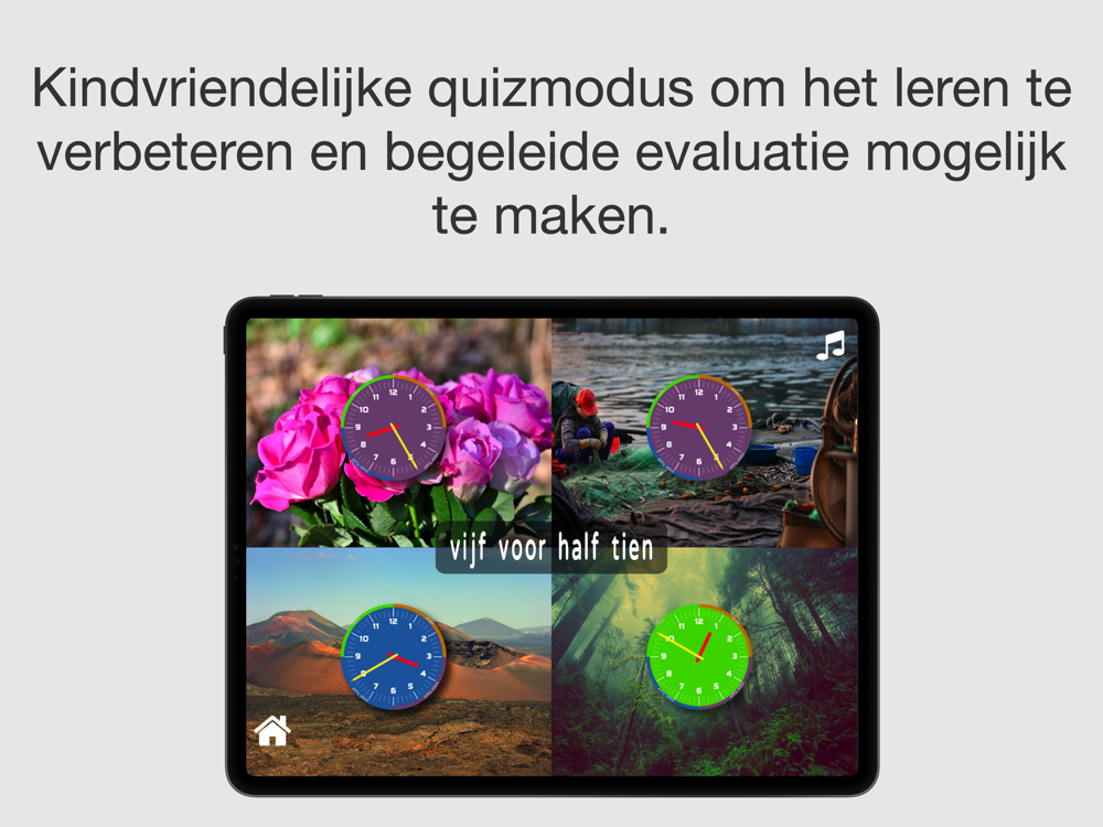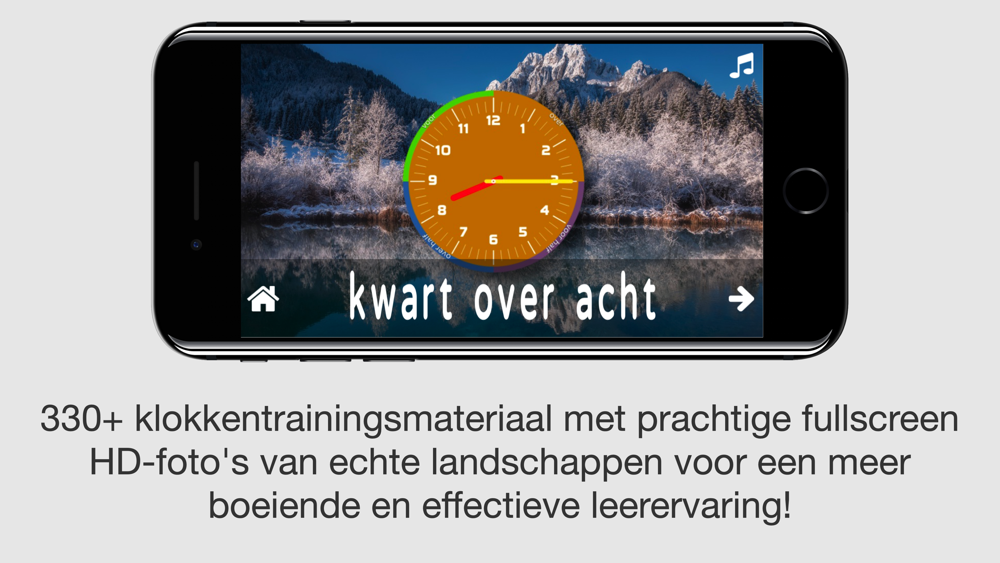 - 330+ klokkentrainingsmateriaal met prachtige fullscreen HD-foto's van echte landschappen voor een meer boeiende en effectieve leerervaring!