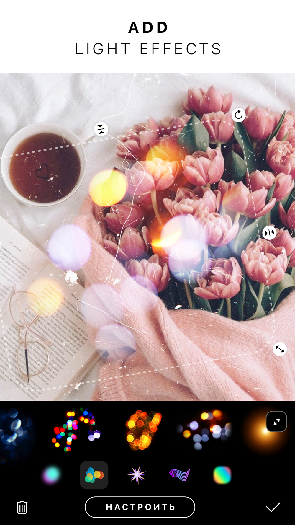 For film photography lovers! We've created dozens of effects based on scans of legendary films and unique stylish filters and presets. Add light leaks, beautiful glare, bokeh effects and more. Create amazing film photos!