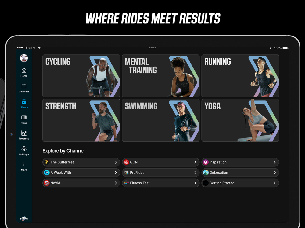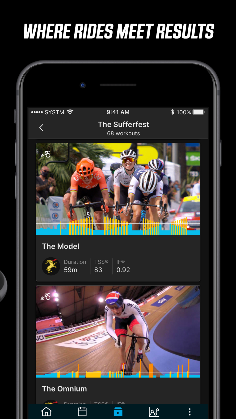 SYSTM puts you in the middle of the action with a huge library of workouts paired to heart-pumping, motivating content. Experience what it’s like to be a professional cyclist with the ‘ProRides’ series, featuring first-person, on-board camera footage from the biggest races in the world. Train alongside Wahoo athletes and get a backstage pass to getting fast with the ‘A Week With’ series. Go ‘On Location’ to ride the world's most iconic routes, push yourself with a workout from ‘The Sufferfest’ collection, or get inspired with the ‘Inspiration’ series of cycling-focused documentaries paired to base and recovery sessions. And if you want to stream your own content while doing a structured workout complete with on-screen instructions, fire up one of the ‘SYSTM NoVid’ sessions.