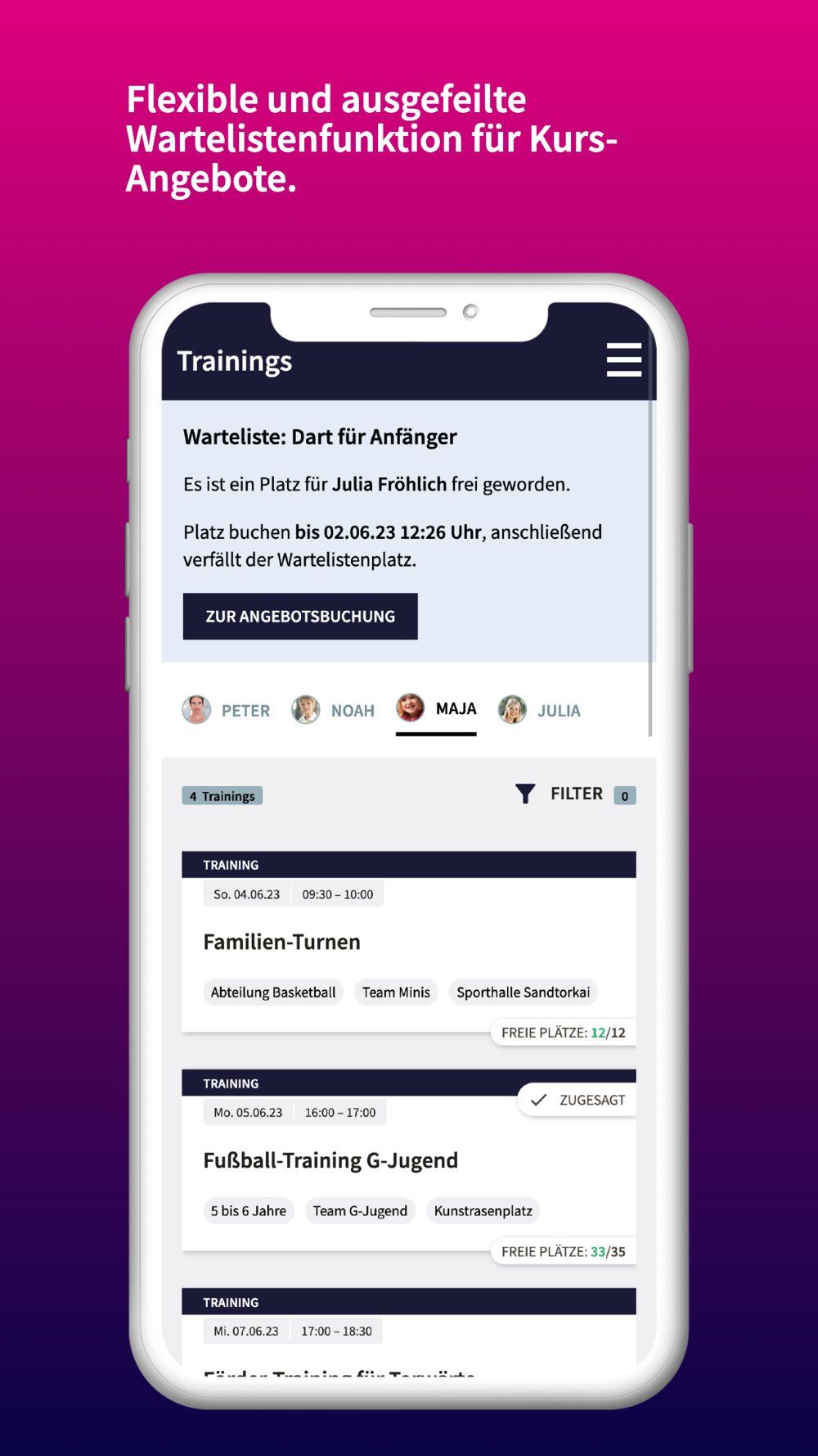Zusätzlich verfügt die Clubity-App über eine Wartelisten-Funktion.