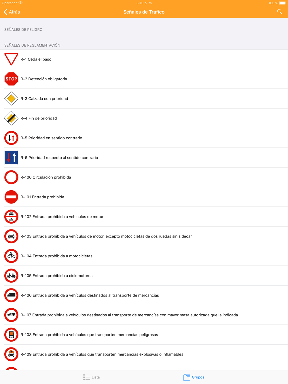 + La elección del grupo de señales para entrenamiento. Se puede elegir un grupo determinado de señales viales cual sabe menos o cual desea entrenar en este momento.