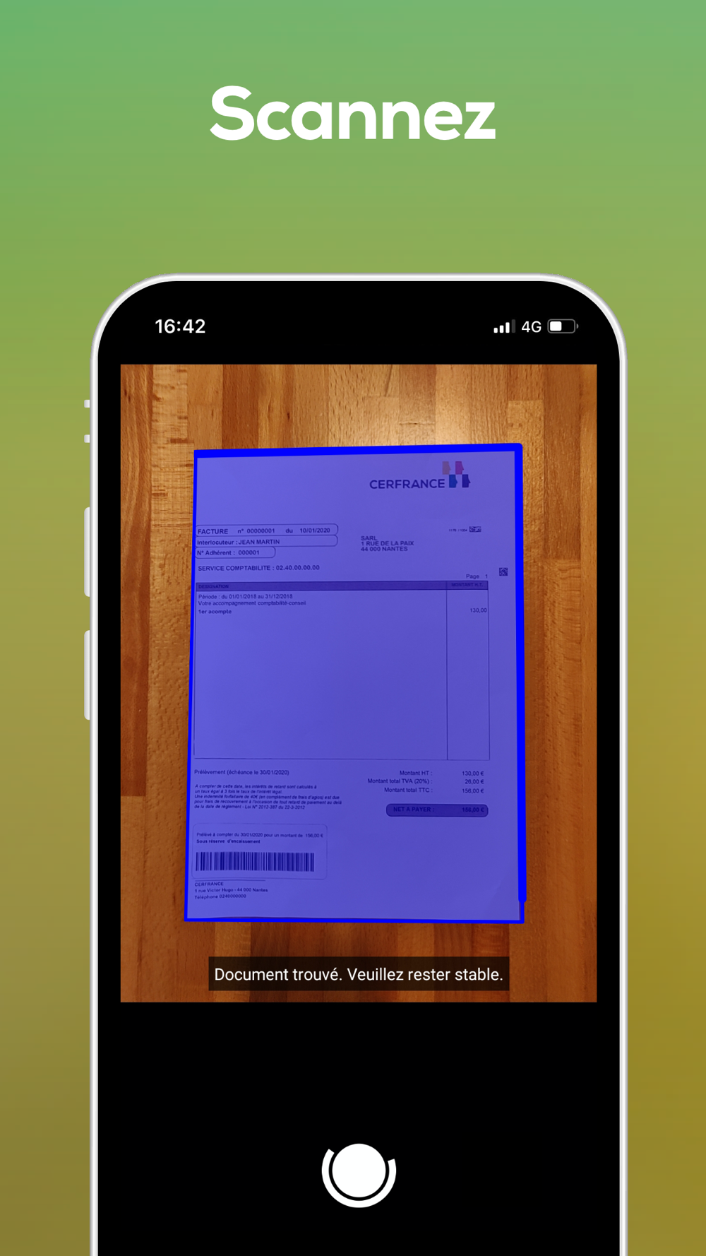 2. Prenez en photo votre document depuis l’application.