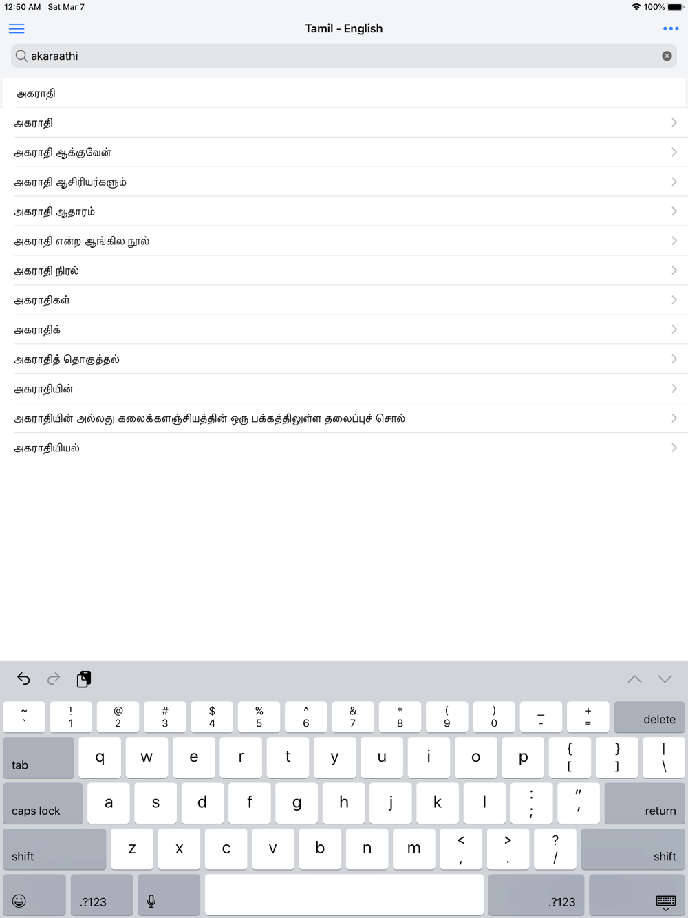 Tamil Dictionary is a FREE must-have app for English to Tamil / Tamil to English translation purposes, with a database of more than 400,000 words for iOS 11 and above.