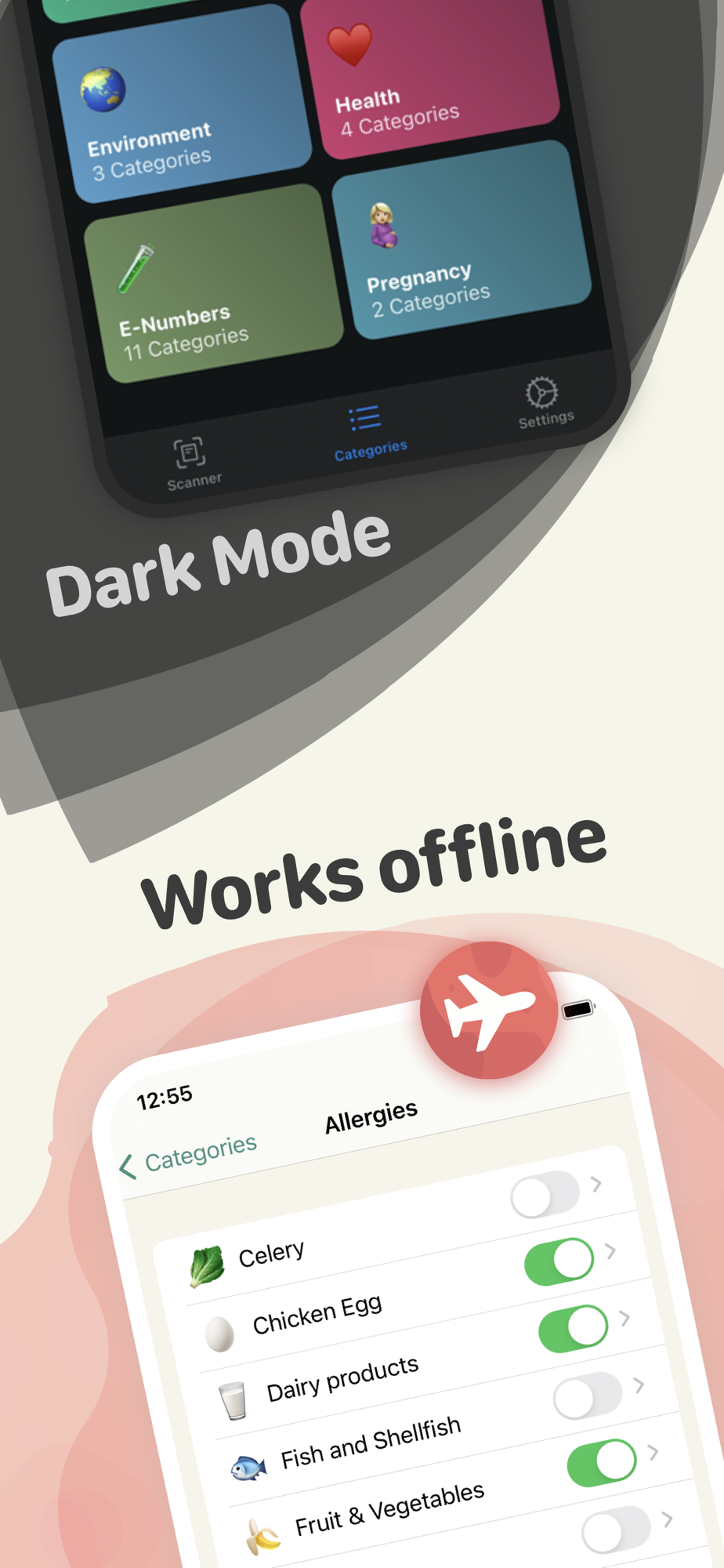It includes more than 30 categories for common allergies, a vegan lifestyle, pregnant women, high environmental impact, additives, health and more! Point your camera at an ingredient list and words you have enabled are highlighted instantly.