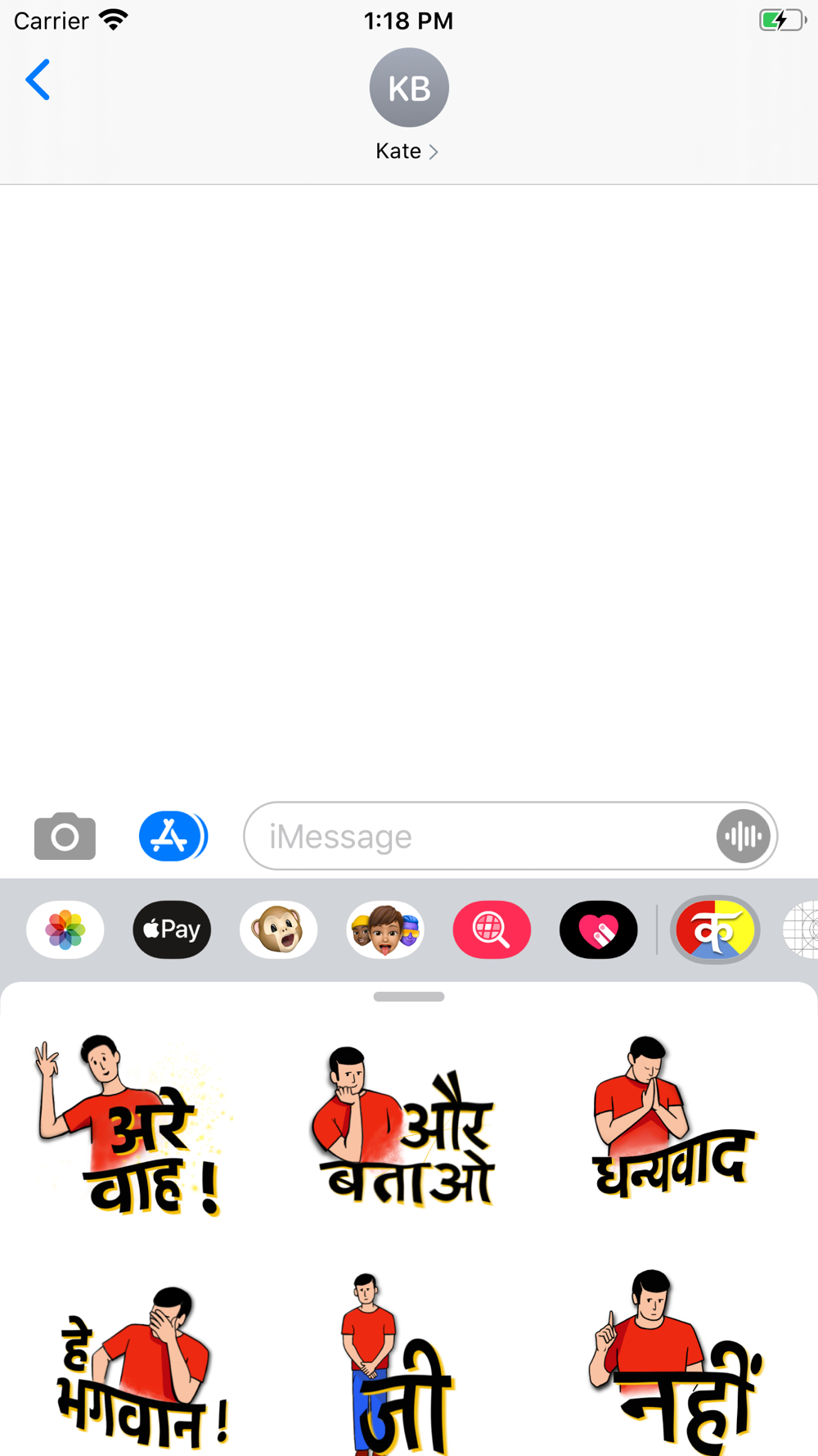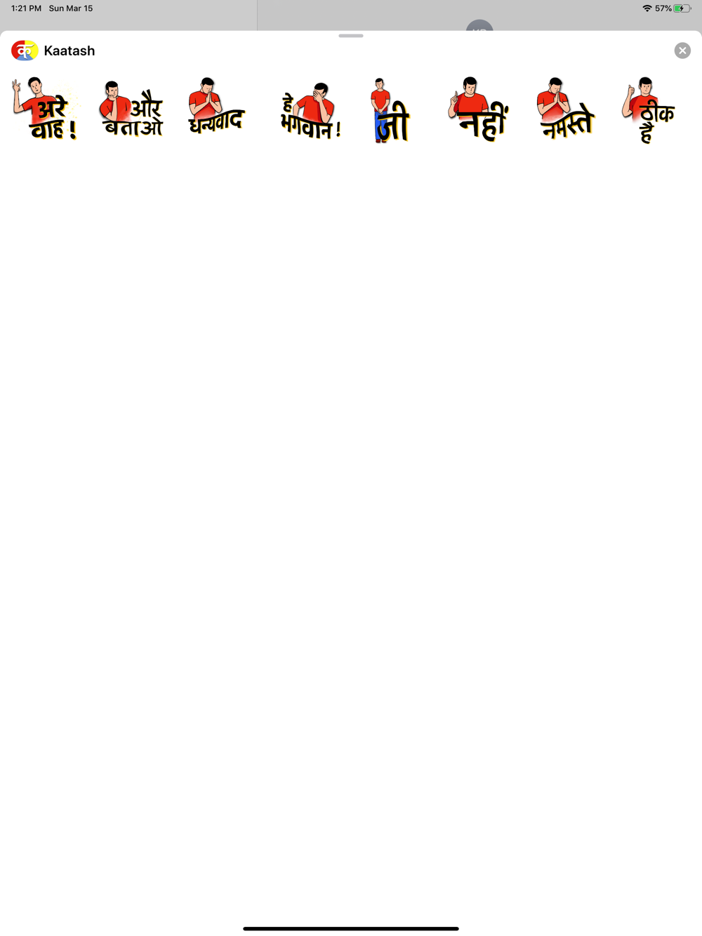 The wait is over to reply back in hindi for your iMessages! These stickers will cover the essential words you use continuously, every day. No need to write Hindi using English letters and feel awkward when ignorant spellcheck turns your “Ji” to “Hi” :-) Make your messages funny, engaging and more authentic by saying it in native characters!