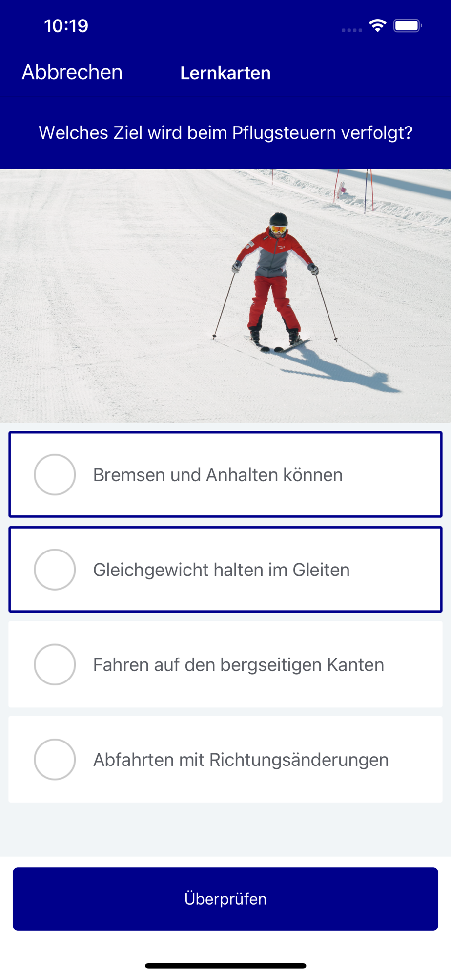 Die Ski Austria Mobile Academy nutzt für den digitalen Wissenstransfer die Methode des Microtrainings. Dabei wird die Essenz verschiedenster Wissensinhalte kompakt aufbereitet und durch kurze und aktive Lernschritte vertieft. Beim klassischen Lernen kommt dafür ein Algorithmus zur Anwendung. Die Fragen sind in zufälliger Reihenfolge zu bearbeiten. Wird eine Frage falsch beantwortet, kommt sie später noch einmal – solange, bis sie in der Lerneinheit dreimal in Folge richtig beantwortet wird.