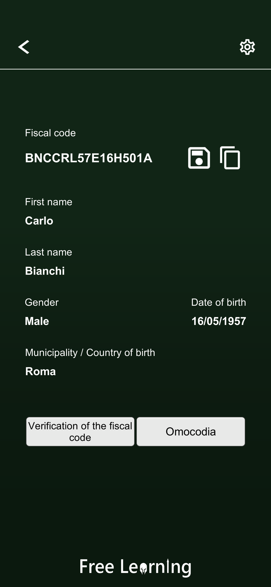 - Get data (Gender, Date of birth, Municipality / Country of birth) from existing fiscal codes;