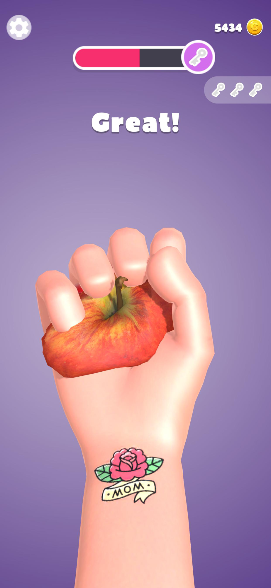 Gameplay: Tap and hold to squeeze objects in the palm of your hand. Release your hand before it turns to red and hurts.