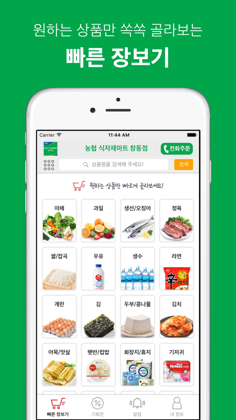 빠른 장보기 - 기획전 - 알림 - 신속배달