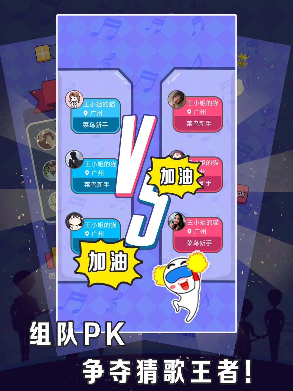 猜歌人气王是一款老少咸宜的听歌曲猜歌名游戏,采集了由网友提供的上万首歌曲,经典老歌、当红明星爱豆、热门影视综艺音乐应有尽有!