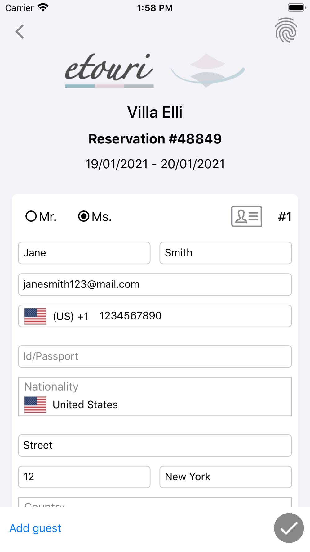 eCheckin for customers, for use in front desk / reception to easily gather all necessary customer information