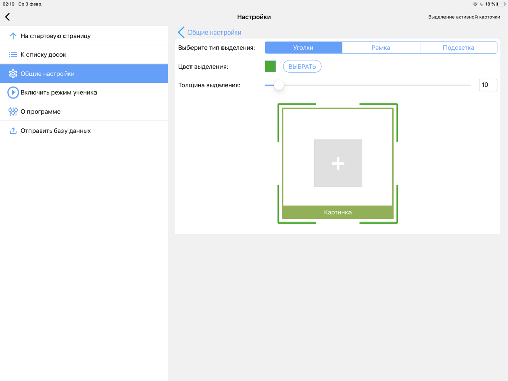 - Озвучивание карточек на доске (встроенный синтез речи, запись с диктофона, звуковой файл)