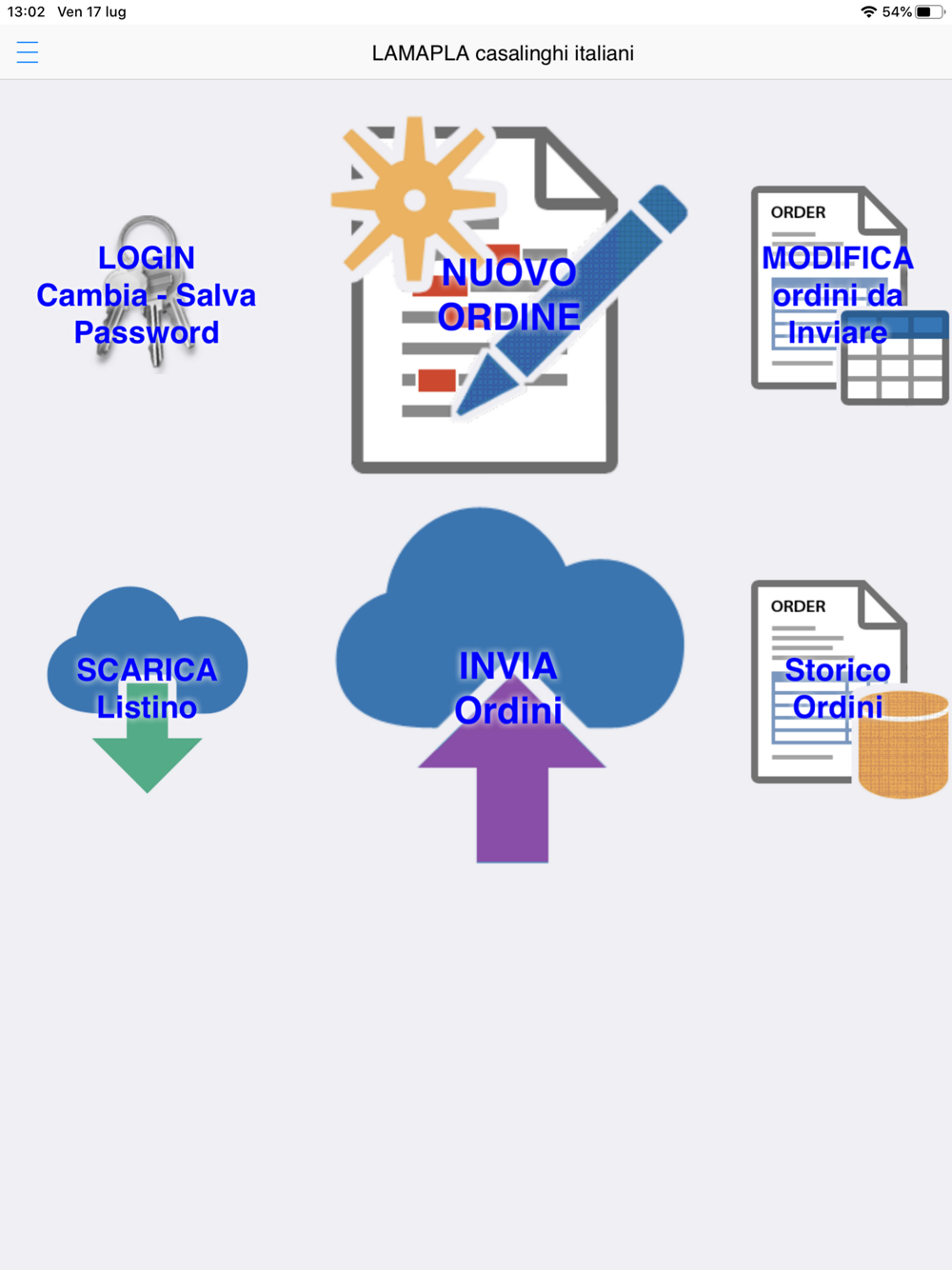 L'app lavora in offline per cui per iniziare occorre prima scaricare il catalogo e poi si possono visionare gli articoli ed eventualmente ordinarli.