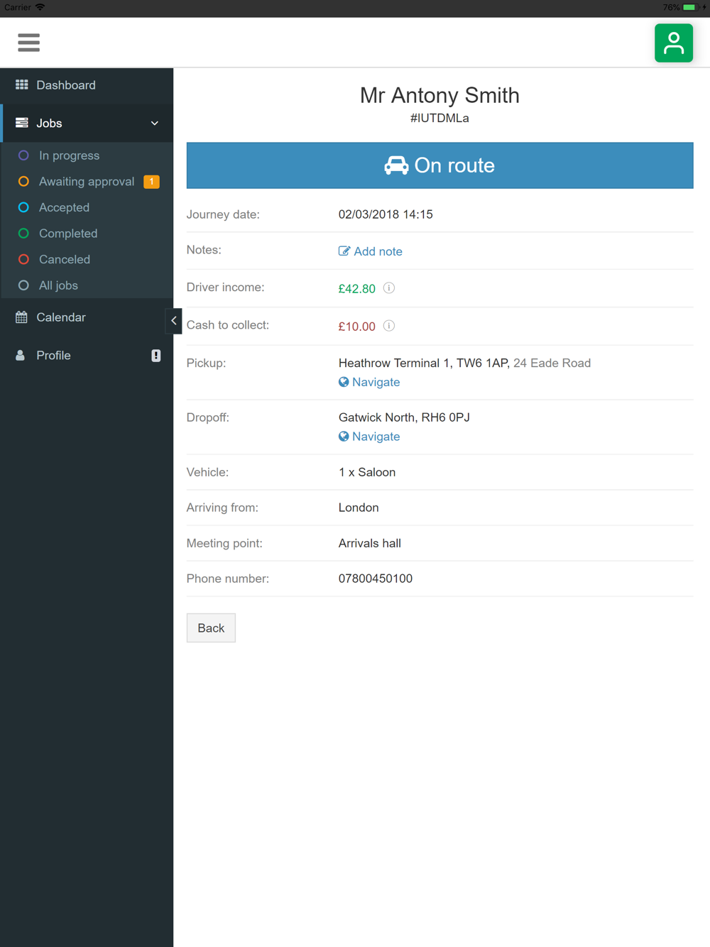 - switch on GPS tracking when at work allowing company to more efficiently assign new jobs