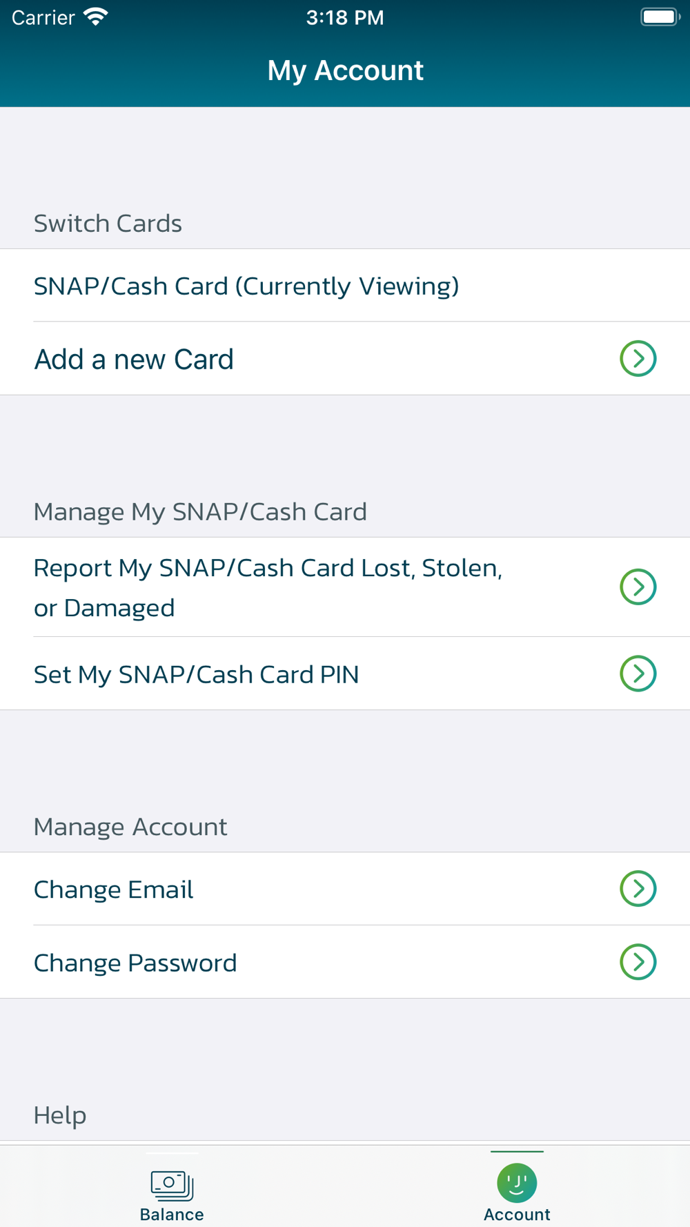 • Card Management – Select PIN and/or deactivate/request an EBT card
