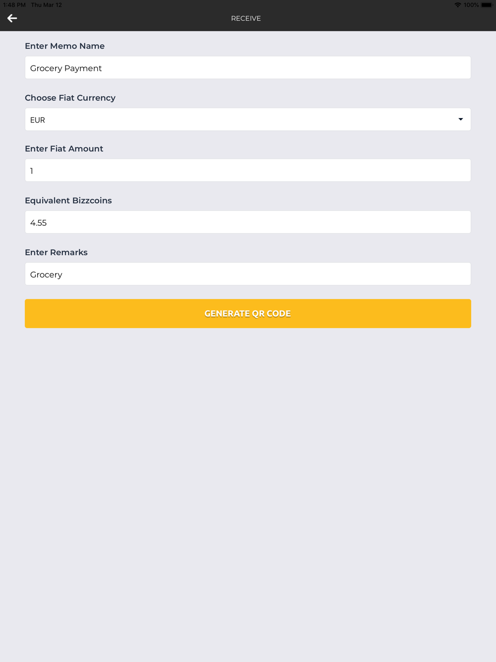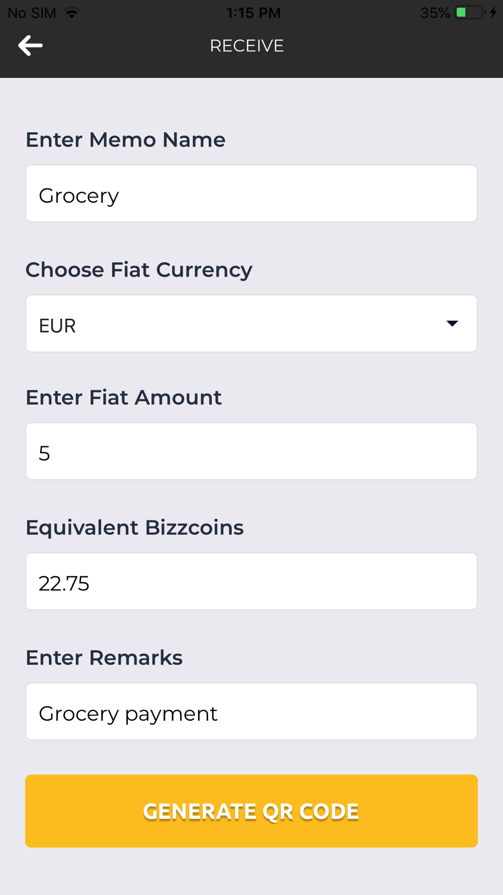 3 The buyer will pay for the commodity using BizzCoin tokens by scanning his/her QR code