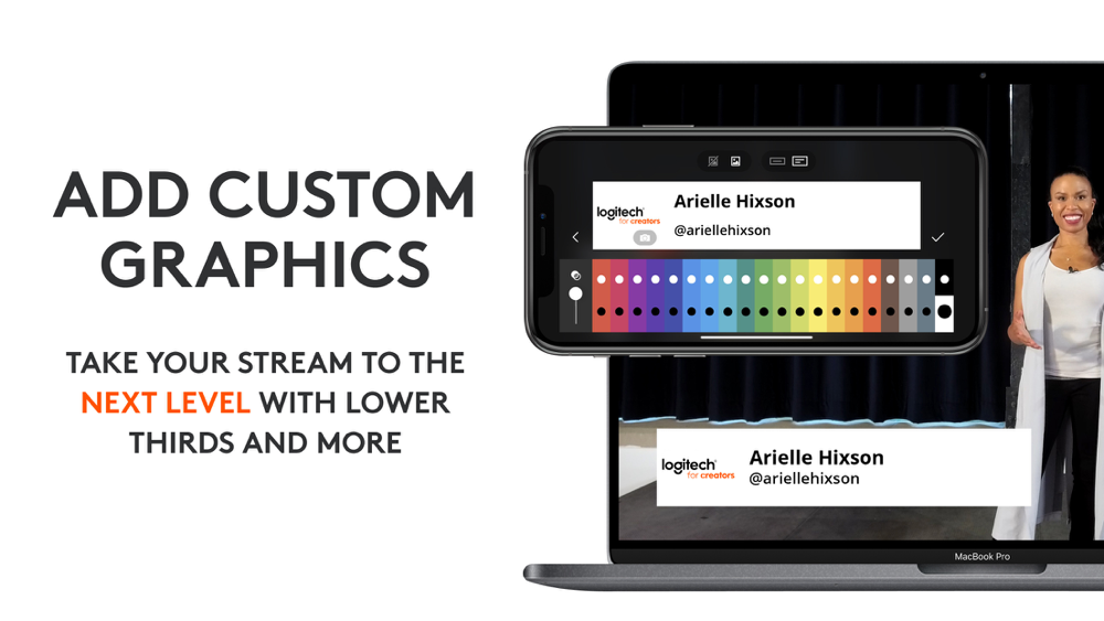 Add custom graphics including lower thirds, corner bugs, and full screen images and video to elevate the look of your stream