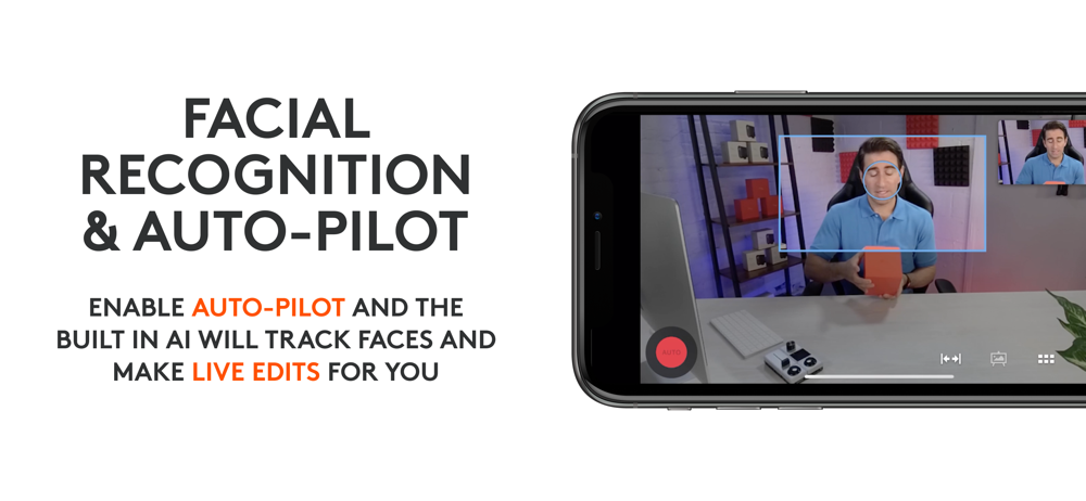 Enable autopilot and the built-in AI will track faces and make live edits for you.