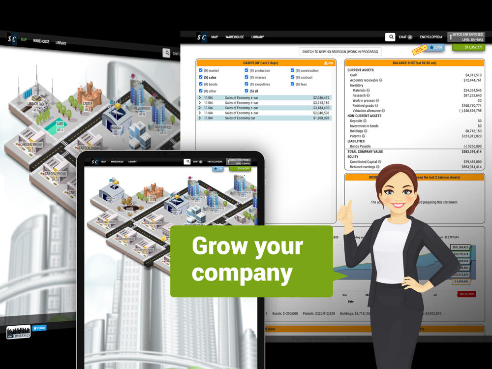 Sim Companies is an extremely versatile browser game, allowing you to experiment with diverse resources and to test your skills against other players. The game is a strategic business simulator, providing you with a lot of fun and experience managing a company by following real-world economic principles.