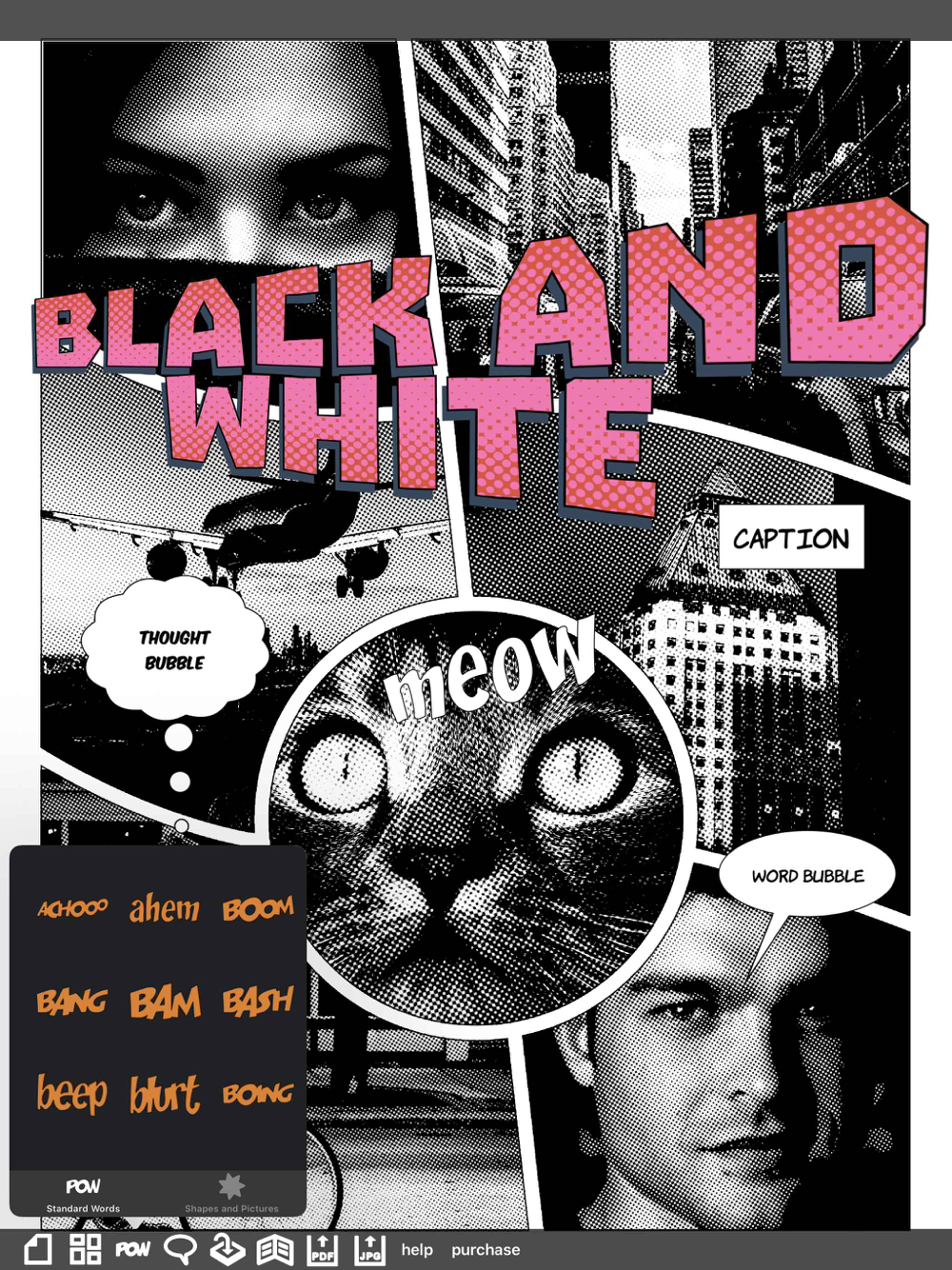 Make eye catching comics from your photos, adding word balloons, effects and stickers.