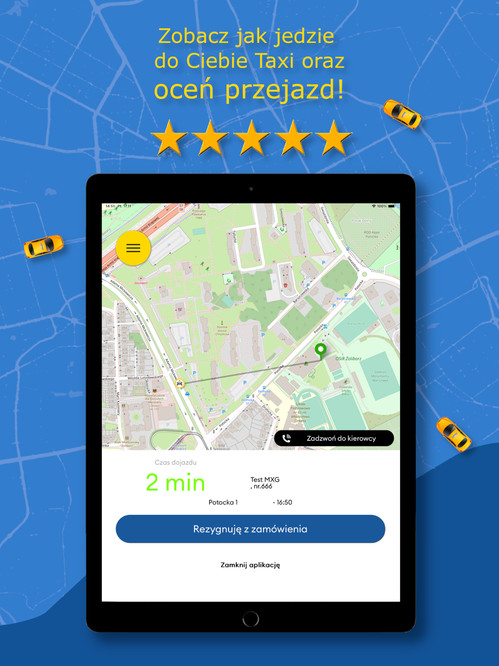 Bezpłatna aplikacja służąca do zamówienia taksówki w LITE w Białymstoku. Aplikacja pozwoli na szybkie i wygodne zamówienie taksówki, oszacuje koszt przejazdu i czas oczekiwania, a także powiadomi, gdy taksówka dotrze pod adres zamówienia.