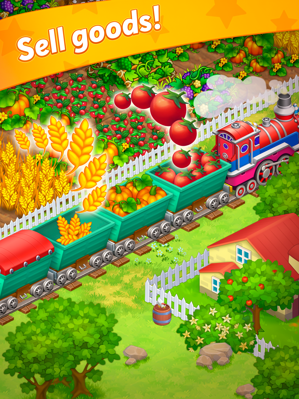 Dominate the market: plant fertile fields, collect huge harvests, raise animals, make goods and products, and sell them at the market or trade with friends!