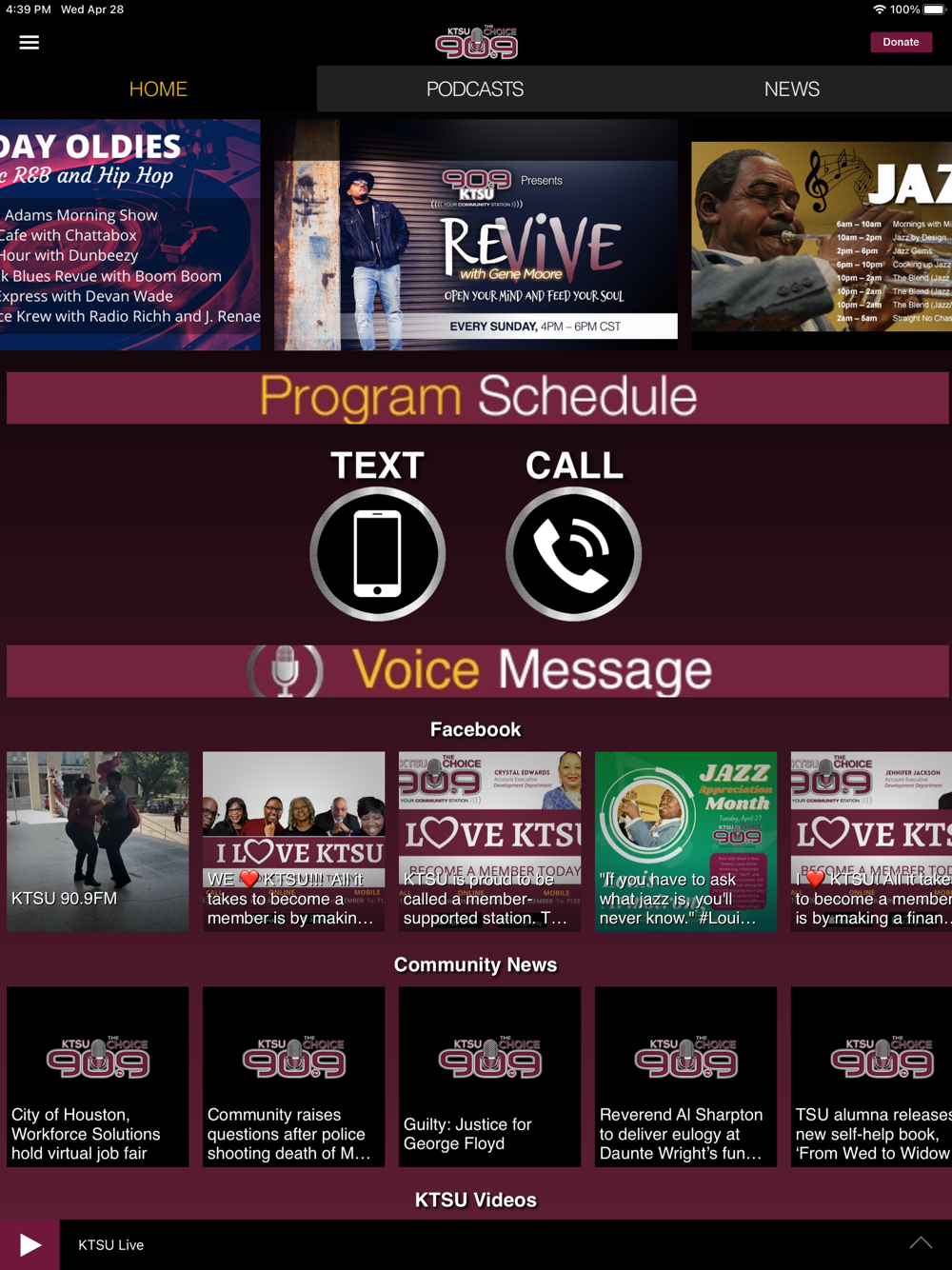 The KTSU App allows you to listen to KTSU, pause and rewind the live audio, and view the program schedule for KTSU all at once! You can explore and listen to On Demand content whenever you want, share stories with your friends, and wake up to KTSU with the alarm clock!