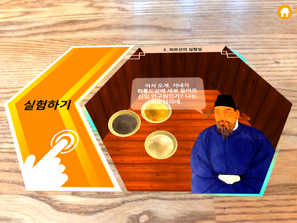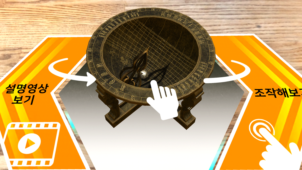 증강현실 기술로 실제 눈 앞에서 보는 듯 실감나게 구현된 우리나라 고유의 시계와 무기를 살펴보고, 관련된 과학적 지식들을 학습해보는 교육용 콘텐츠입니다.