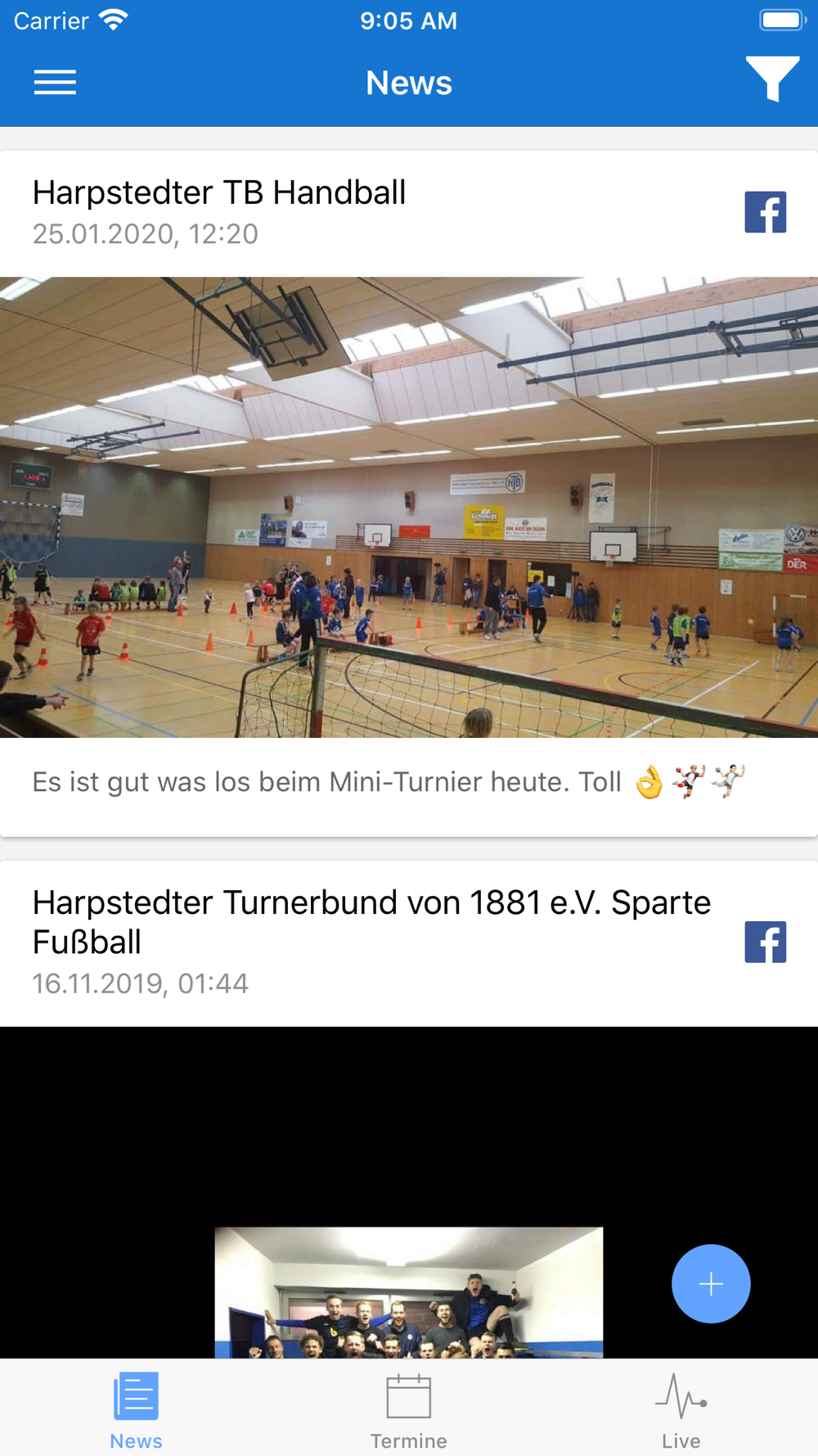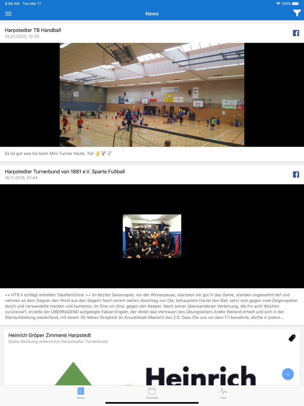 Durch die Einbindung sozialer Netzwerke kannst du das Geschehen im Verein brandaktuell mitverfolgen.