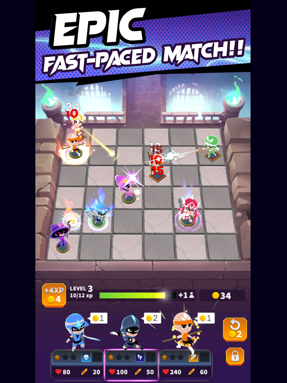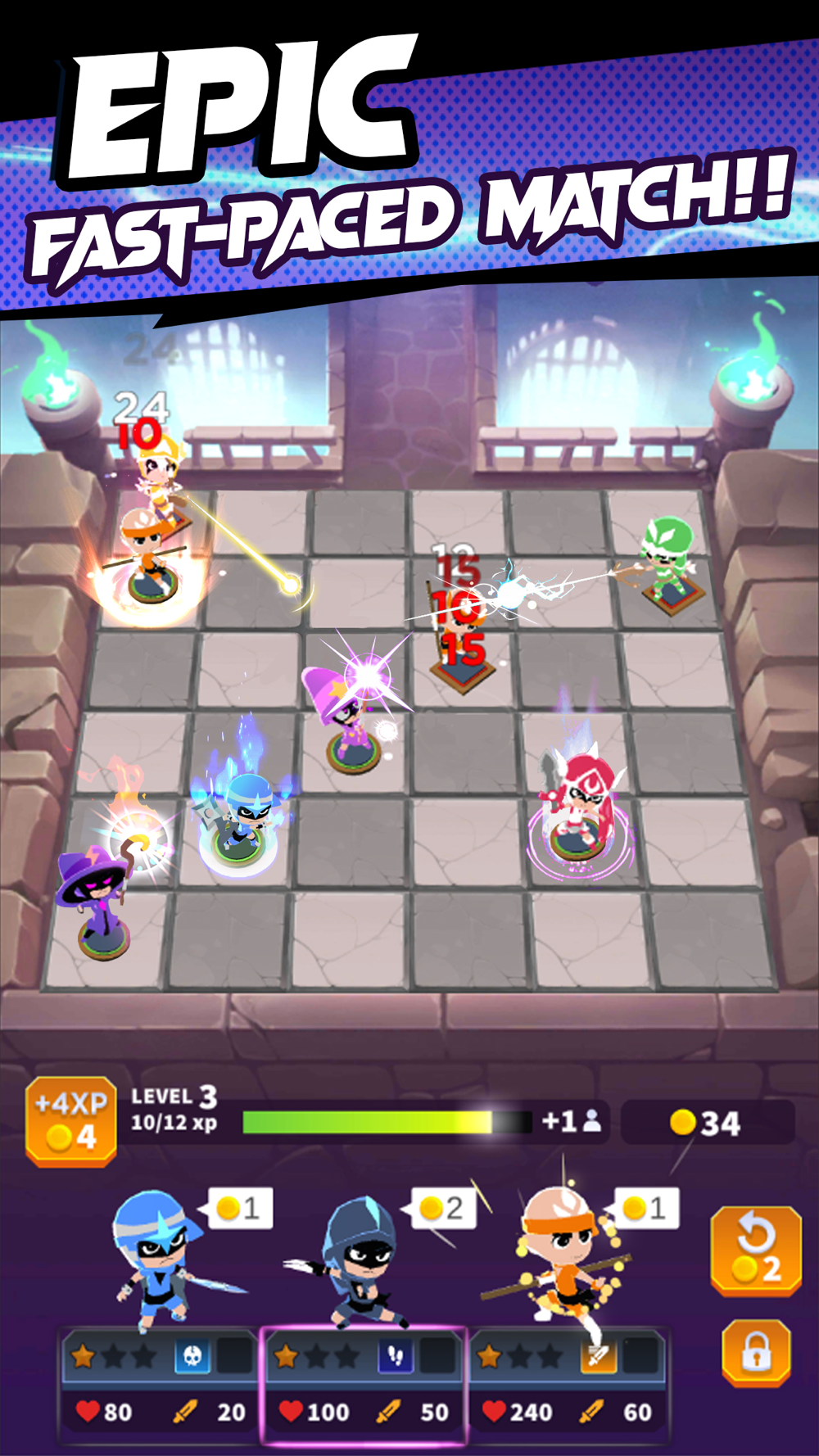 Outsmart your opponents on the chess board! Assemble a team of heroes and beat the endless waves of enemies! Choose from different classes to make up your formation: mages, rogues, warriors, and rangers. Merge your characters to level up. Place heroes strategically on the board to create synergy with their teammates. May the smartest player win!