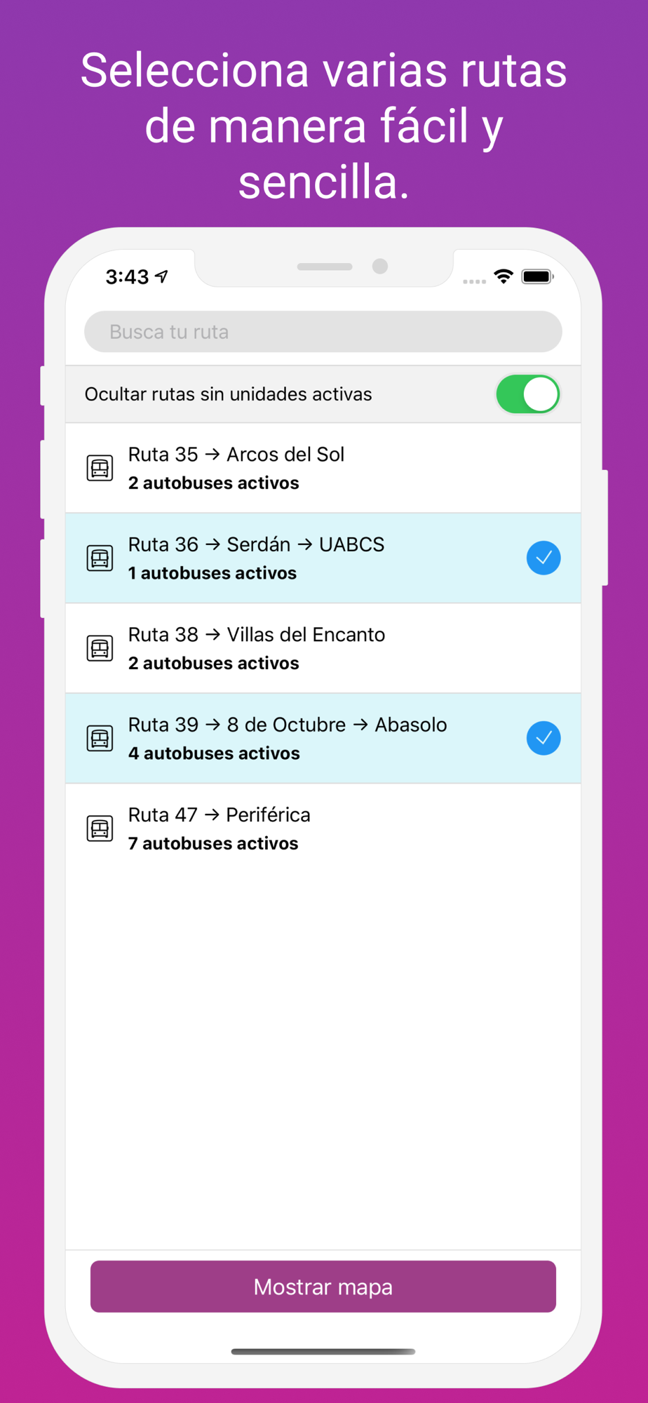 Aplicación para visualizar las rutas de transporte publico de tu ciudad, podrás ver algunos autobuses en tiempo real.