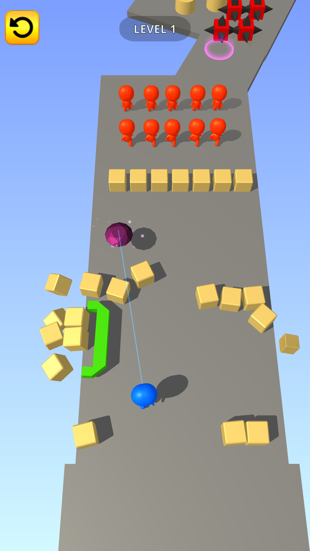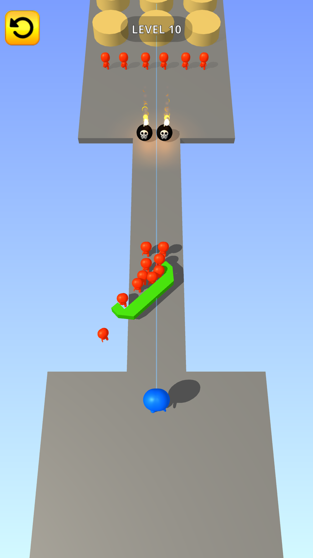 Use your finger to move the green bar and remove items from the blue guy's path.