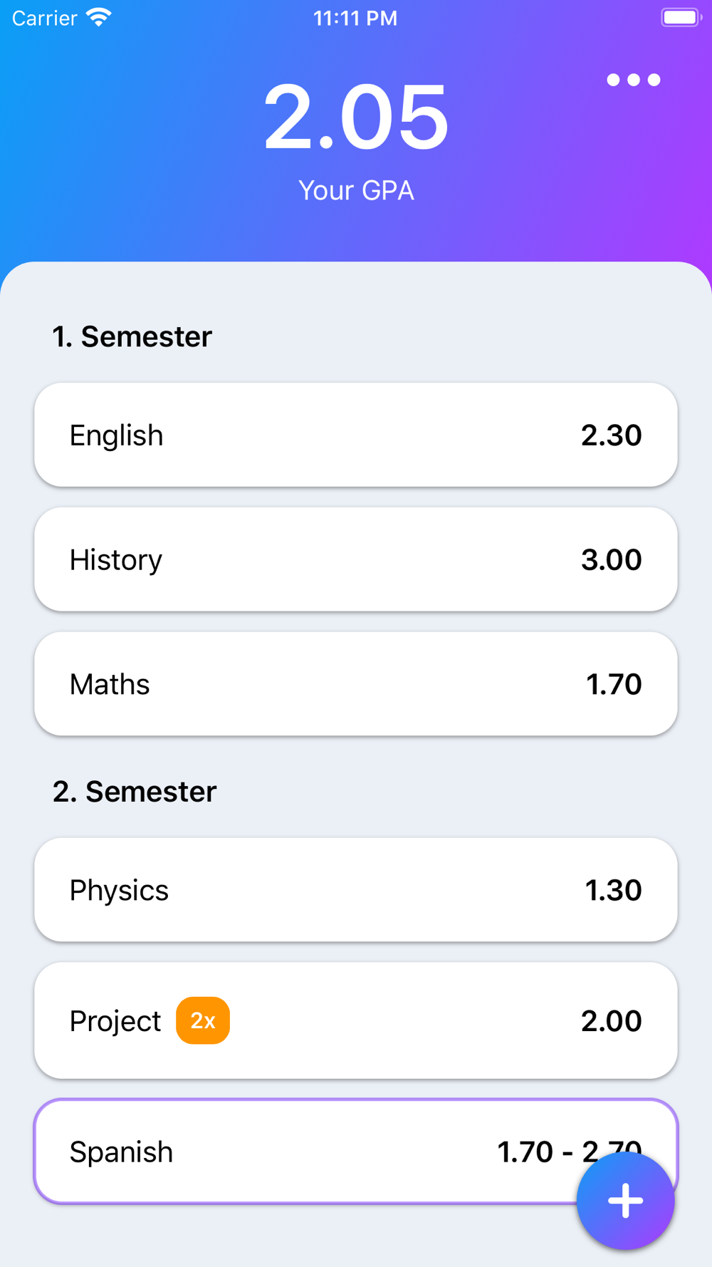 This app gives you a beautiful overview of your grades. You can organize them in semesters and give them different weights. Additionally you can give a subject a range of grades which gives you an estimates for grades. This is a good way to check your GPA even if you do not know the final grade of a subject.