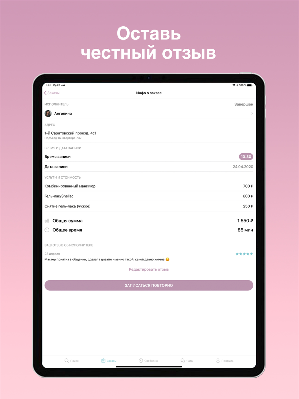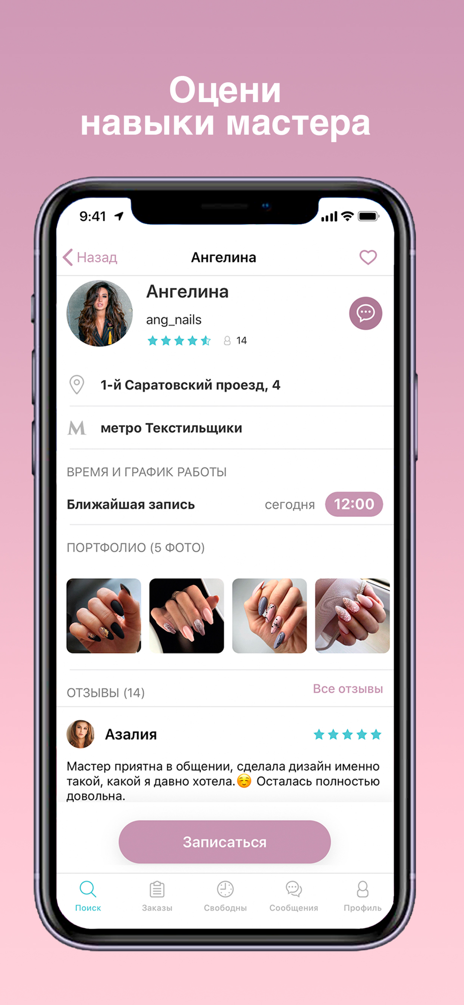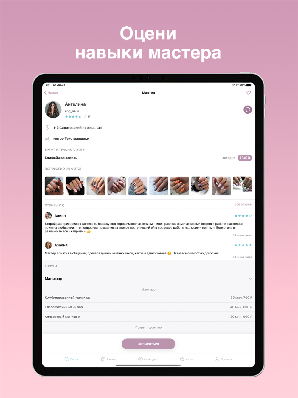 Перед записью на услугу посмотрите отзывы и не забудьте заглянуть в портфолио мастера.