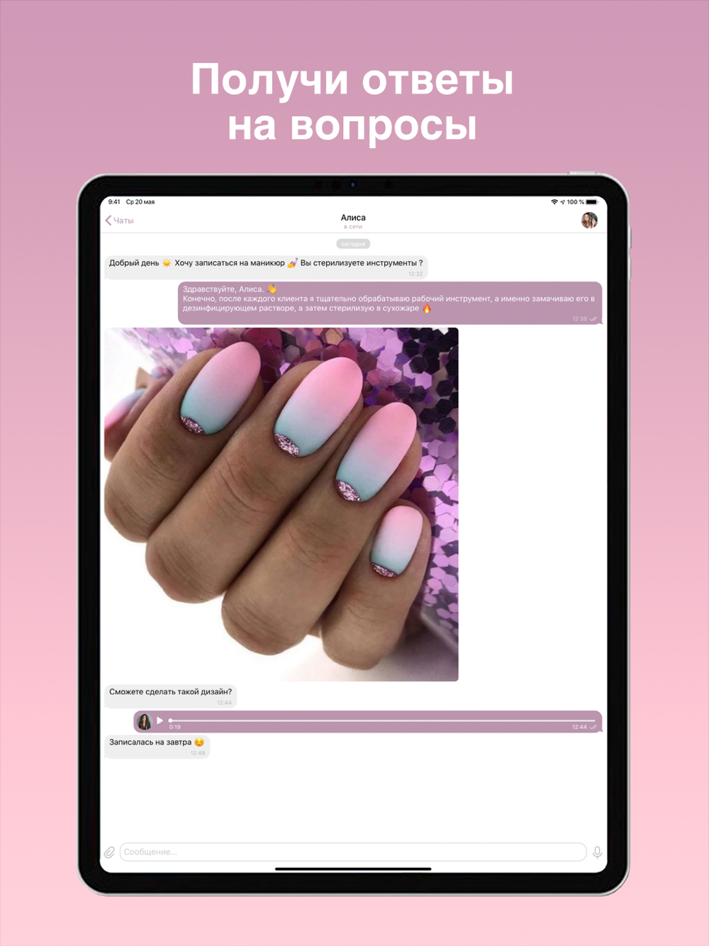 Оставьте свои пожелания мастеру в момент записи на сеанс. Например - «Хочу ногти вердепешевого цвета!»