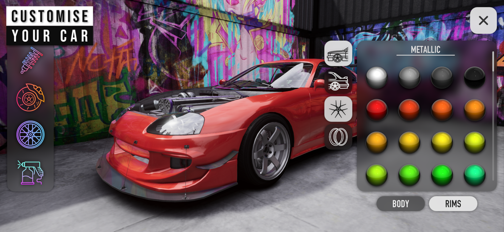 - Cool car customisation, 120+ paint materials, 25+ rims