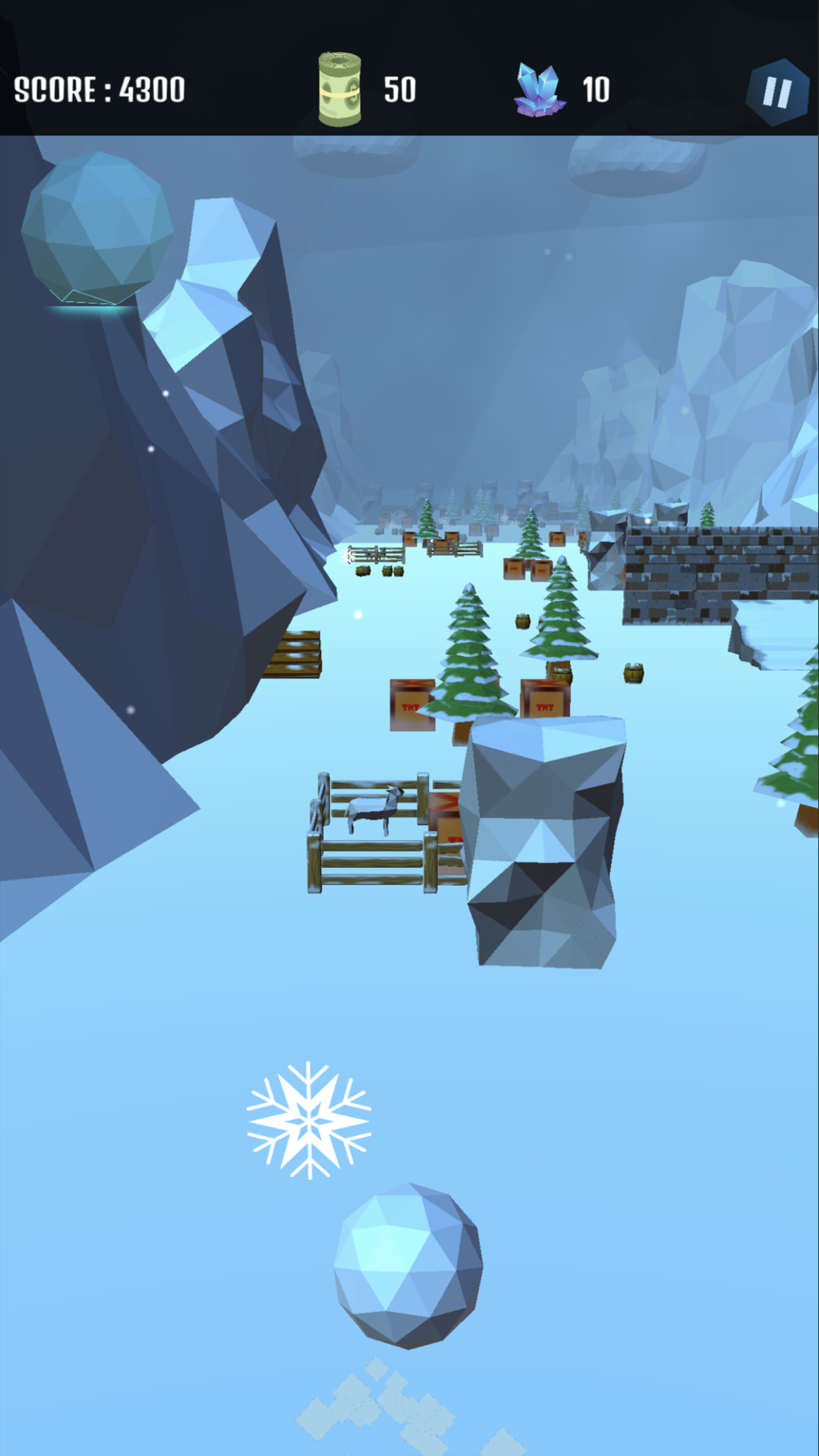 The player can also collect snow flakes which will help the player in increasing its strength, thereby allowing the player to destroy bigger objects too.