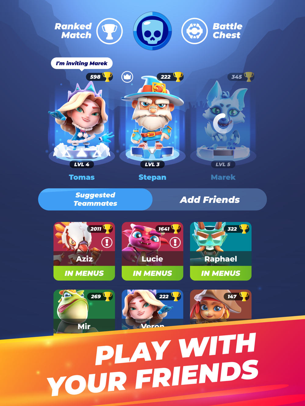 • Fast-paced, 3-minute session brawler tailor-made for mobiles – all in portrait mode!