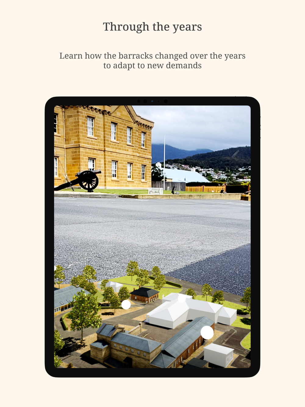Explore this engaging augmented reality replica of Hobart's Anglesea Barracks through the years from establishment in 1811, right through to the present day.