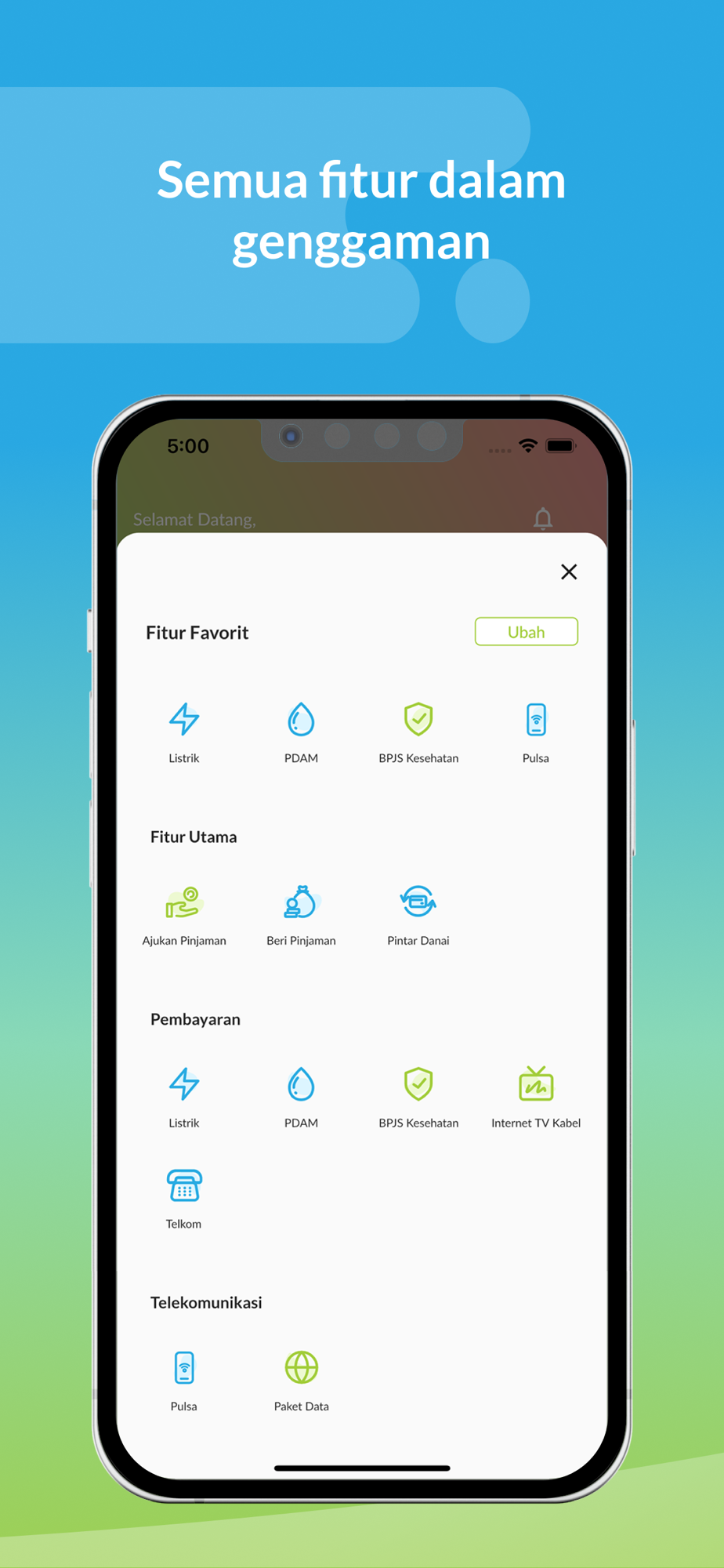 5. Membayar tagihan listrik dan isi ulang pulsa untuk semua provider telekomunikasi Indonesia kapan saja.