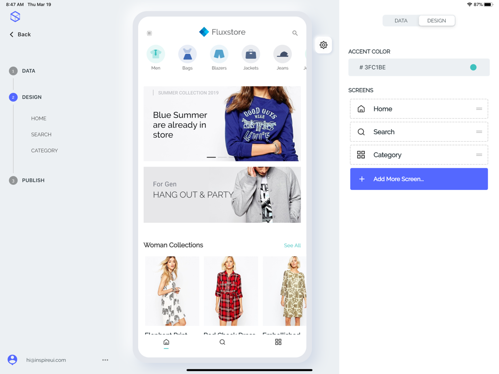 FluxBuilder is the Design tool that guides help you to preview and design the mobile app easily and super productivity. No desktops, design or mobile building skills needed. All you need is your iPad/iPhone and the FluxBuilder app.